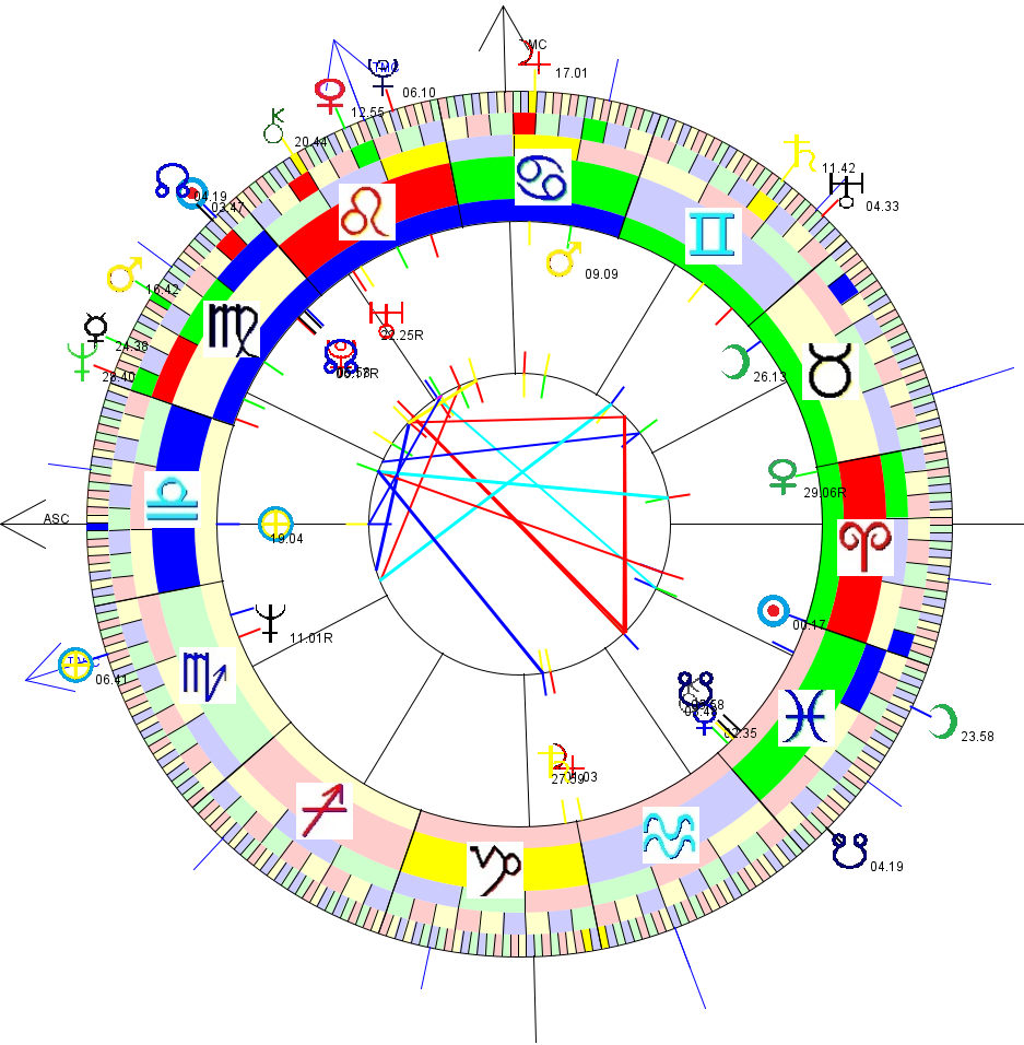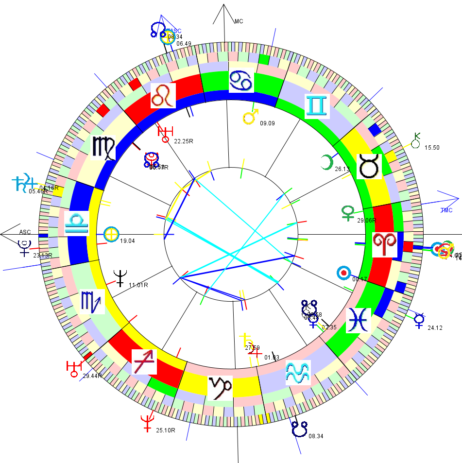 This happened on Saturday, 4th April, at 12:45pm in Los Angeles, where 6 Leo was rising. Whether or not this was the precise moment of the Kiss is a moot point. But it was that weekend that it happened. What is important is that the astrology was extreme, the event was extreme, and that they happened in reasonably close proximity.