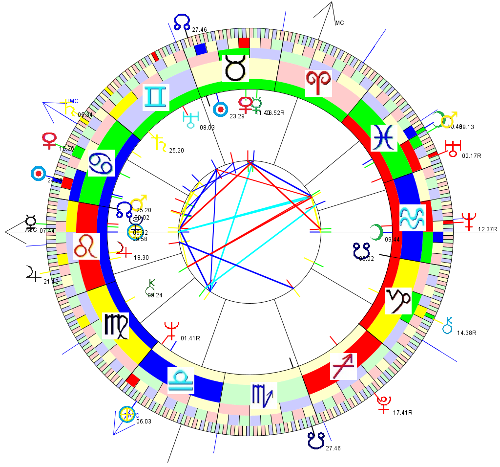 We know the time of death to be about 15:30, which is the time used here, enabling the transiting Ascendant and Moon to be considered.